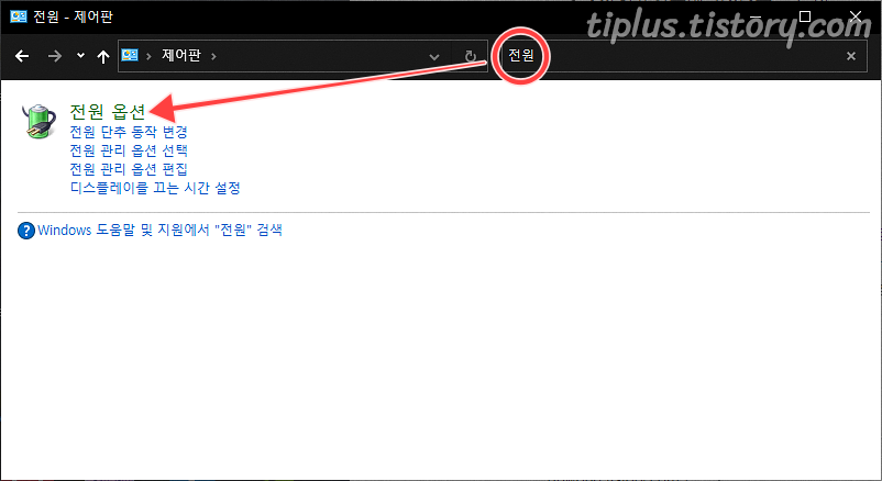 여기서 전원을 입력해보면 전원 옵션 결과가 나타납니다.