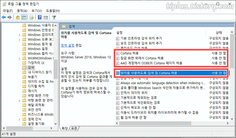 그럼 Cortana 허용의 상태가 사용 안 함으로 맞춰질 텐데, 이것 말고도 나머지 세 가지 항목을 전부 사용 안 함에 맞춰주면 됩니다. 요약하자면,
