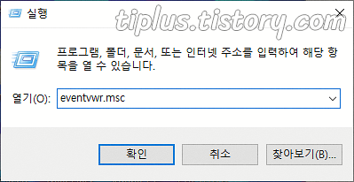 먼저, 첫 번째 방법은 조건은 위 소주제에서도 알 수 있듯, 모니터 화면이 멈추고 바로 팬이 크게 돌기 시작하면서 꺼졌다 켜지는 현상이 일어났을 때 이벤트 뷰어에 찍히는 로그를 통해 확인하는 방법입니다. 우선, Windows + R 키를 눌러 eventvwr.msc를 입력합니다. 그리고 확인을 눌러보면 이벤트 뷰어를 볼 수 있게 됩니다.